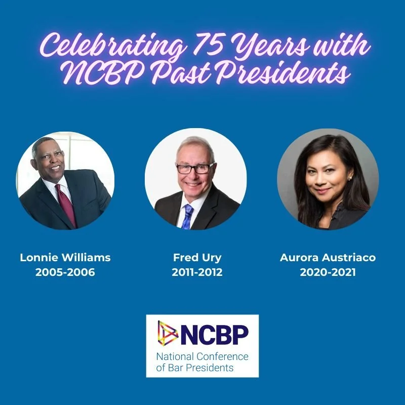 Honored and happy that our own Aurora Austriaco will be joining her fellow National Conference of Bar Presidents past presidents on this exciting panel presentation as they celebrate NCBP’s 75th Anniversary!